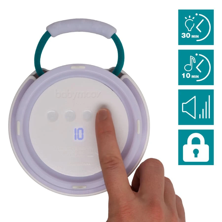 Éducative, la veilleuse projecteur Dreamy permet de choisir le temps de sommeil de bébé grâce à son timer intégré avant de le réveiller.