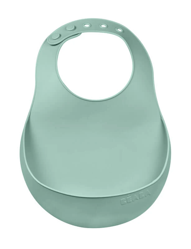 Le bavoir silicone de la marque Béaba est idéal pour les premiers repas de bébé dès 4 mois.