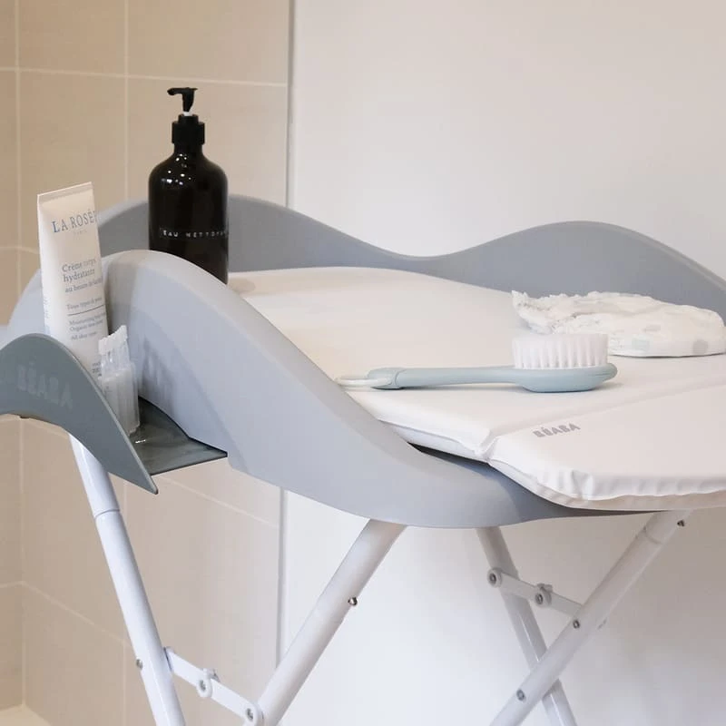 - Ce plan à langer est équipé de 2 tablettes latérales rétractables pour garder le nécessaire de toilette de bébé à disposition.