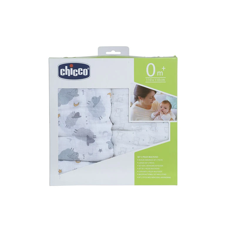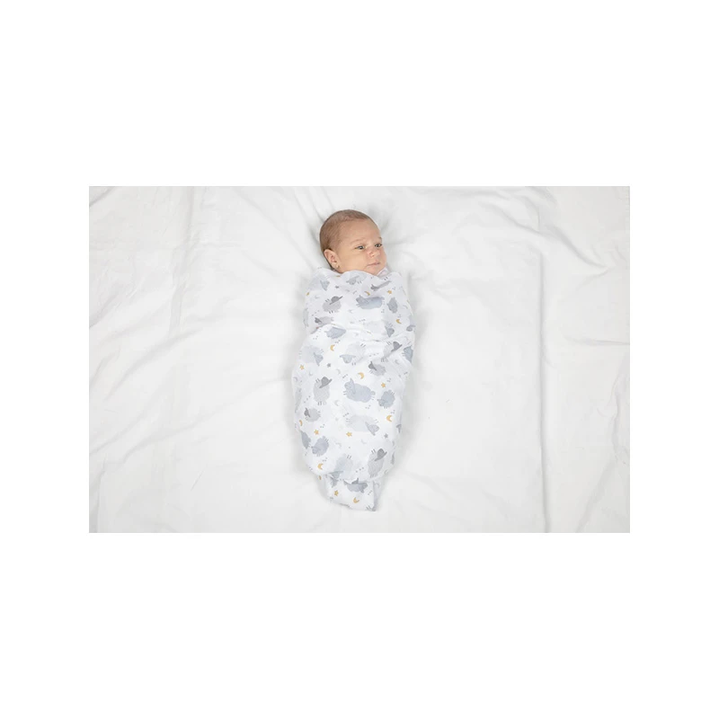 Langes doux et légers en mousseline de coton avec motifs light grey et little animals.