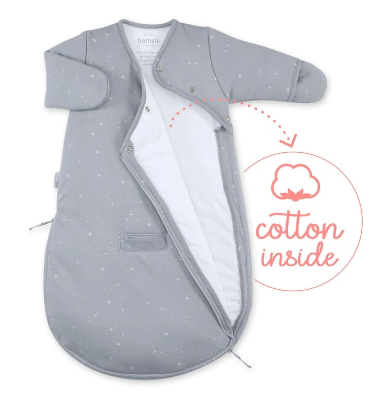 La gigoteuse hiver Magic Bag Pady Jersey Étoiles gris de la marque Bemini convient pendant les mois froids de l’an afin de garantir le confort et la protection de bébé.