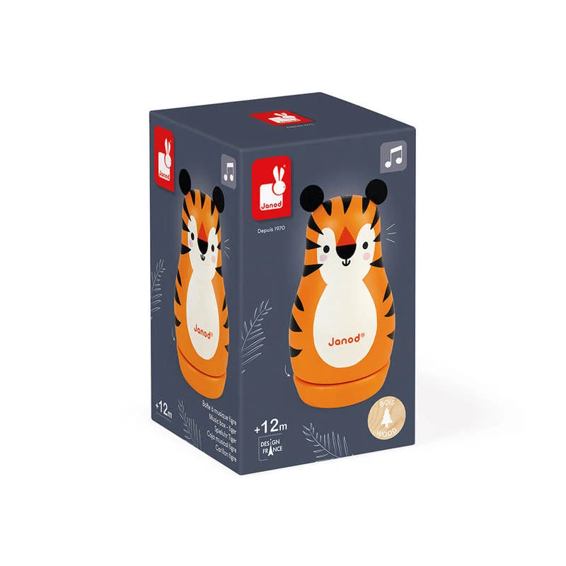 La Boite à musique Tigre de la marque Janod est une jolie boîte à musique en bois.