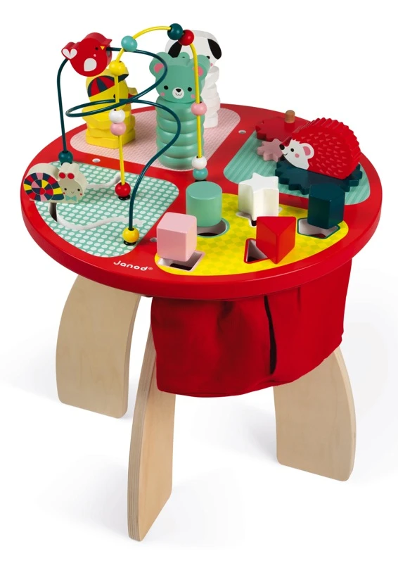 Découvrez la table d’activités Baby Forest de Janod et ses multiples zones de jeux pour apprendre de manière ludique ! Elle convient dès 12 mois et comprend 3 animaux superposables, 3 roues à engrenage, un labyrinthe et 5 formes à encastrer avec poche de récupération.