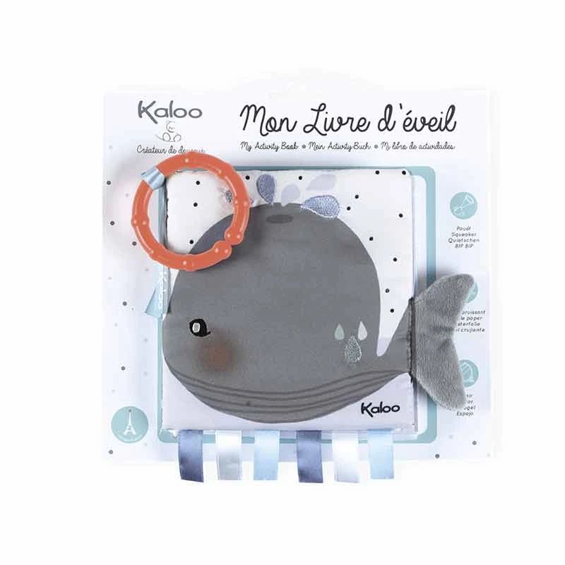 Le livre d’éveil Le Baleineau Triste de la marque Kaloo est un ouvrage souple en tissu pour les tout-petits.