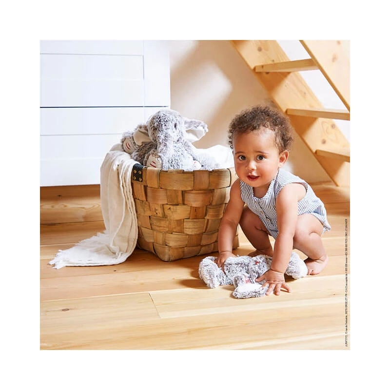 Le petit éléphant Noa gris prestige 24 cm sera le partenaire idéal pour être auprès de bébé. Sa petite taille permet de l’emporter partout. L’enfant pourra serrer cet animal craquant, plein de sagesse et d’intelligence. Bébé aura plaisir à jouer avec sa trompe et ses grandes oreilles toutes douces ! Son corps si moelleux et sa longue fourrure choisie spécialement pour sa douceur exceptionnelle invitent aux meilleurs des câlins. Ses petons brodés « marinière » et un patch Rouge Kaloo signent chacun des produits de la gamme et permet de les identifier immédiatement. Lavable en machine. Dès la naissance.