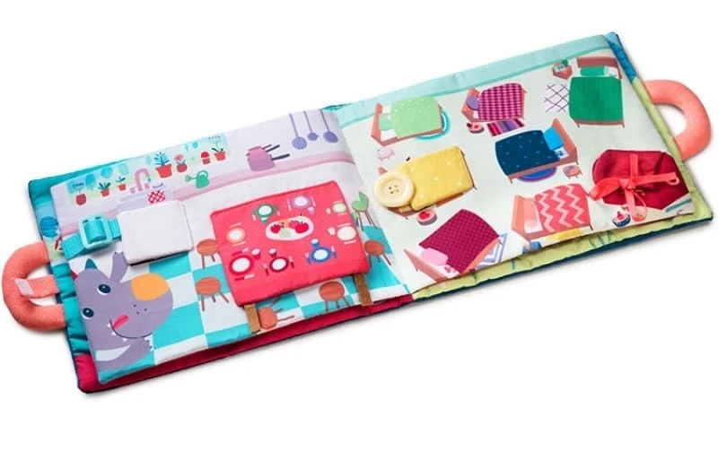 Ce livre d’éveil interactif stimule l’imagination de votre enfant alors que ses couleurs vives développent sa vue.