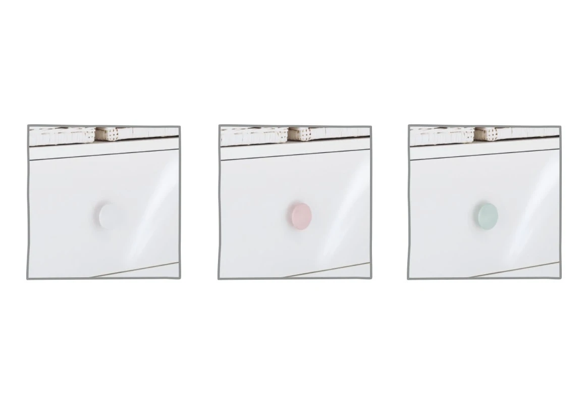 L’armoire 2 portes Florentina est le meuble de rangement parfait dans la chambre de bébé. En panneaux stratifiés blancs, elle est équipée d’une grande tringle et de 3 étagères ajustables en hauteur. Des poignées de couleurs fournies vous permettent de customiser l’armoire selon vos envies.