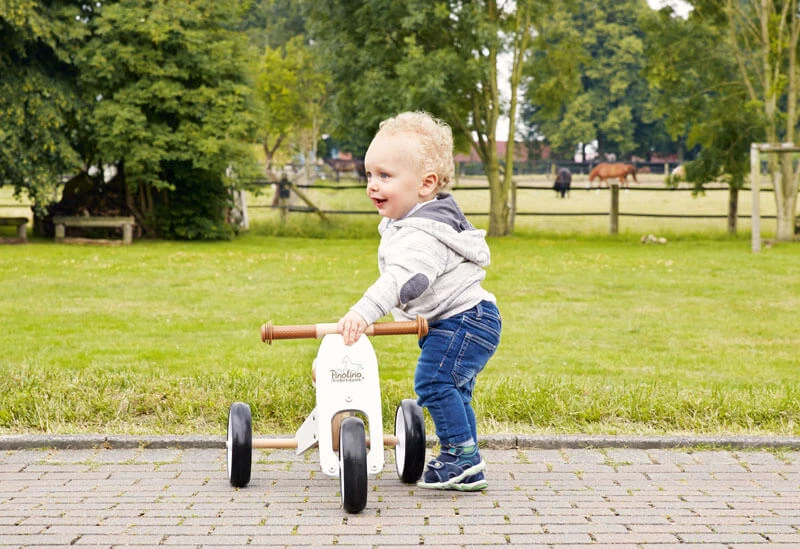 La selle rembourrée et réglable en hauteur en 6 directions fait du tricycle en bois « »Charlie » » un compagnon fidèle pendant de nombreuses années. Il suffit de s’asseoir dessus, de le pousser et de s’éloigner. Le vélo de promenade est recommandé pour les enfants à partir de 18 mois.