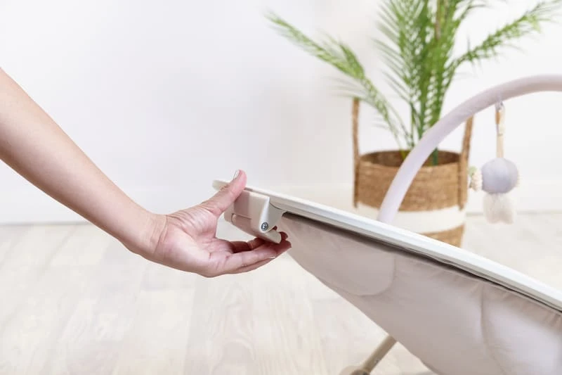 - Polyvalent, il est possible de verrouiller ce transat pour une utilisation en mode fixe ou de bercer doucement bébé en choisissant le mode balancelle.